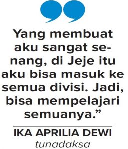 Namun, ketidakikutsertaan dalam Asian Para Games tidak membuat gadis 22 tahun itu terlalu bersedih. Sebab, dia malah bisa mengikuti program-program Ayo Inklusif! yang membuka jalan baginya untuk mewujudkan cita-cita. ”Renang itu hobi saya. Tapi, cita-cita saya menjadi seorang penyiar radio,” ujar kader progresif yang masih duduk di kelas X SMALB Adelwis, Banyuwangi, itu.