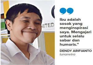 DENDY Arifianto adalah sosok humoris. Hebatnya lagi, meski mengalami kebutaan total, dia sukses menyelesaikan studi S-1 hukum di Universitas Brawijaya dengan indeks prestasi kumulatif (IPK) cukup tinggi, yakni 3,53. ”Tekad saya move behind the darkness,” kata Dendy saat di temui di tempat magangnya (10/9). Melalui Ayo Inklusif!, Dendy mendapatkan kesempatan magang sebagai tenaga telemarketing di PT Andalan Multi Kencana, perusahaan pemasok spare part alat berat (grup United Tractors).